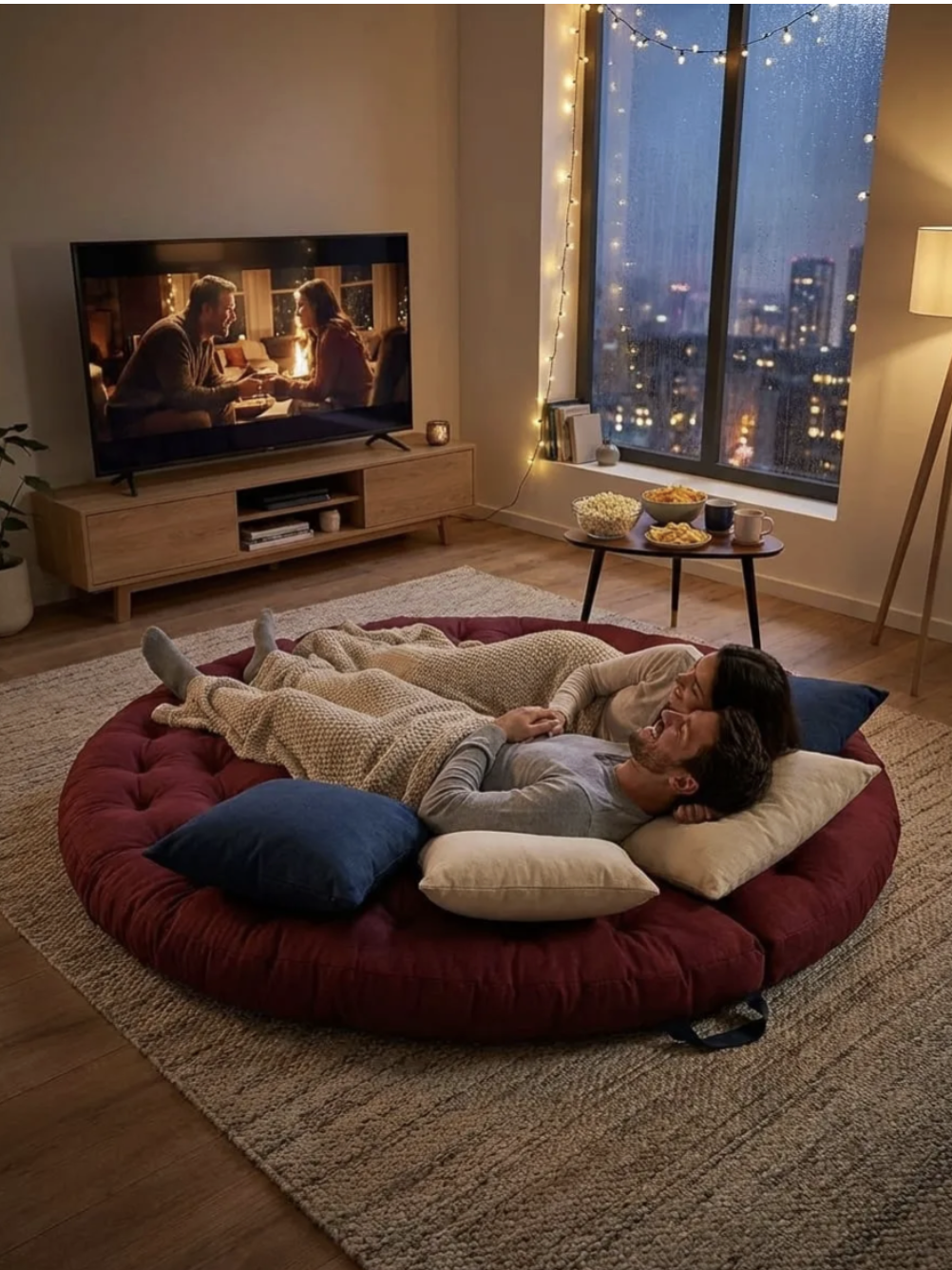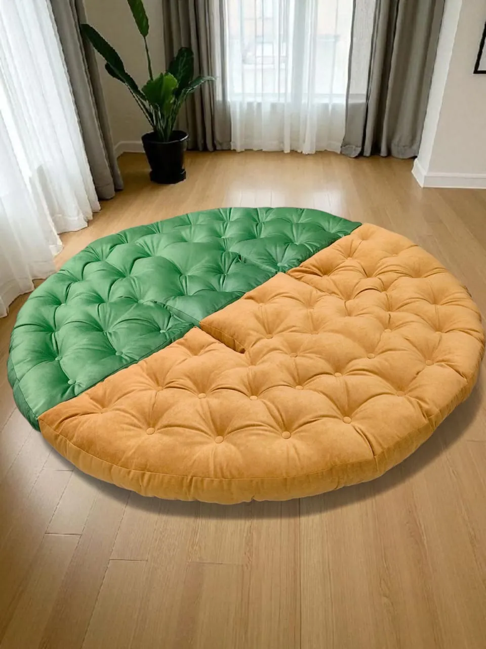 Якщо ви вирішите з'єднати два такі вироби разом за допомогою спеціальних липучок, ви отримаєте великий круглий матрац, на якому зможуть комфортно розміститися гості. Це ідеальний варіант для невеликих квартир, де кожен квадратний метр на вагу золота.