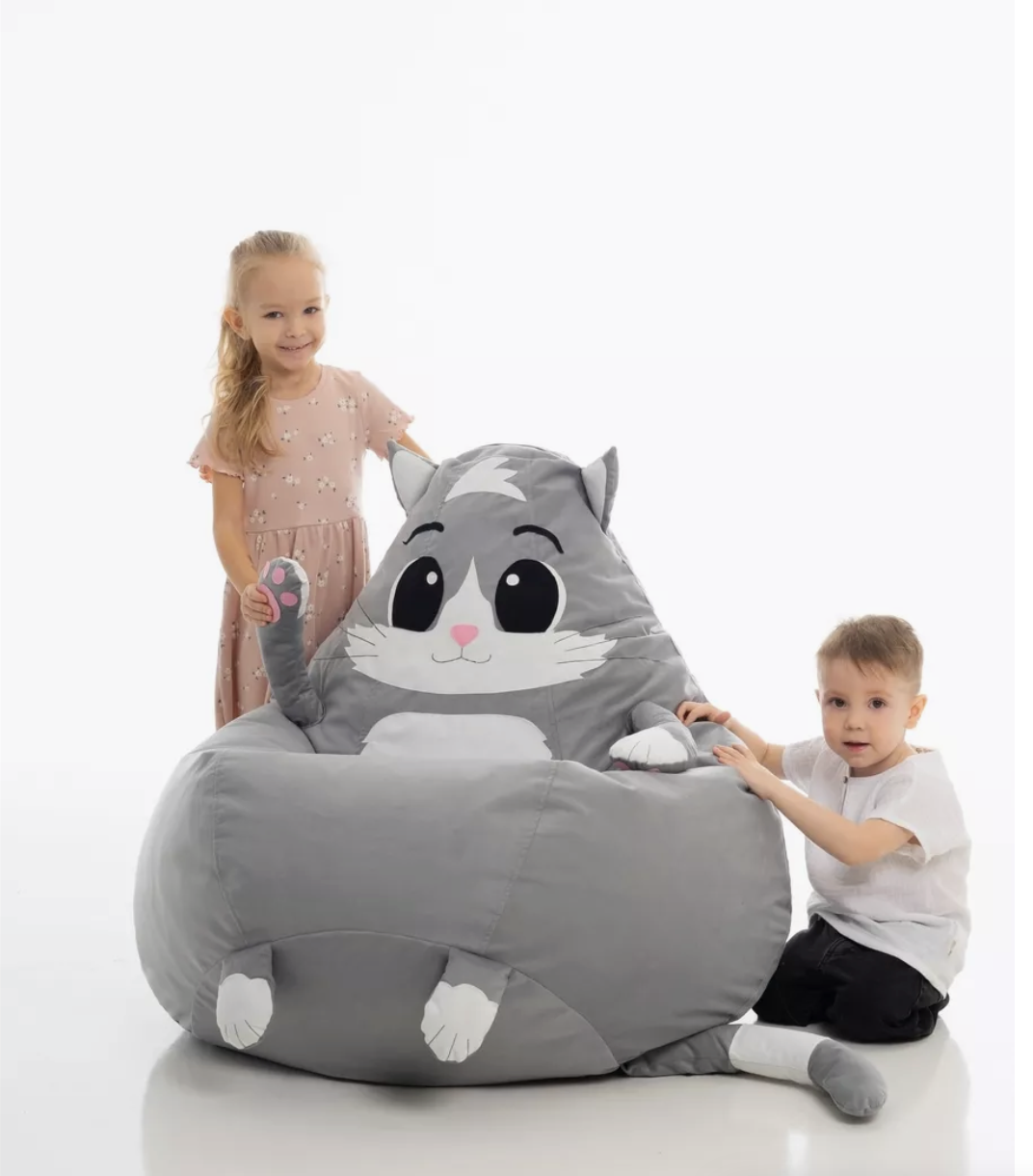 Завдяки продуманій конструкції крісло легко підлаштовується під форму тіла, забезпечуючи максимальний комфорт під час сидіння або відпочинку. Це не просто велике крісло це ще й оригінальна іграшка у вигляді котика, яку можна використовувати як у дитячій кімнаті, так і у вітальні, спальні чи навіть у зоні відпочинку. Його легко переносити, тому це справжня мобільна іграшка, яку можна переміщувати між кімнатами без жодних зусиль.